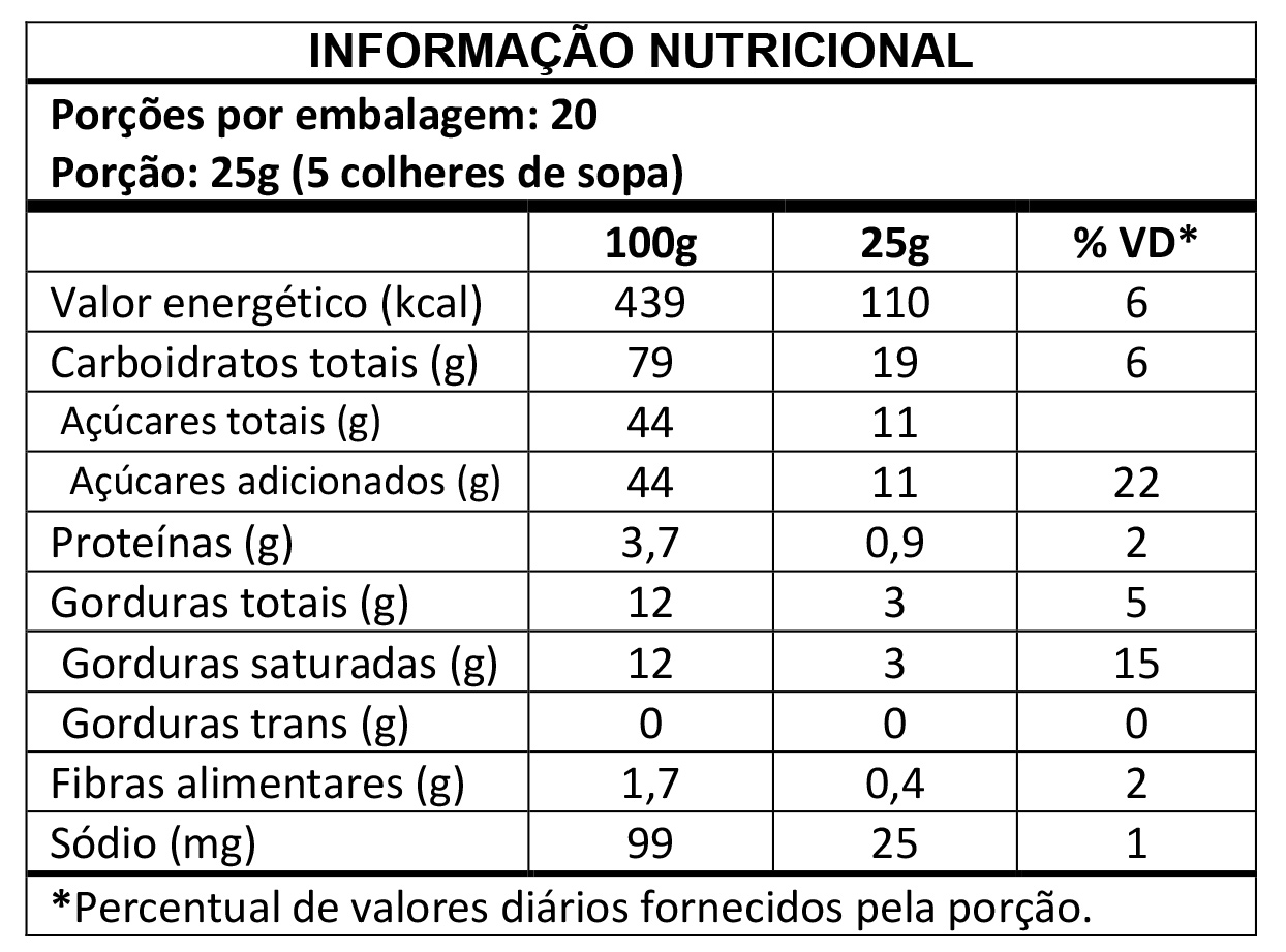 CONTÉM DERIVADOS DE SOJA. PODE CONTER LEITE, AMENDOIM, AMÊNDOA, AVELÃ, AVEIA, CENTEIO, CEVADA E TRIGO. CONTÉM GLÚTEN.